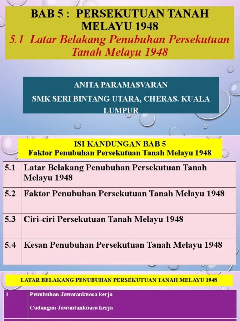 Nota Sejarah Tingkatan 4 Bab 5 Persekutuan Tanah Melayu 1948 - Ting 4 Sej Bab 5 Persekutuan Tanah Melayu 1948 ×××××